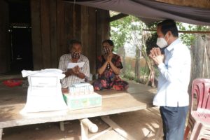 កំពង់ចាម ៖ នៅរសៀល ថ្ងៃទី២ ខែសីហា ឆ្នាំ២០២១ ឯកឧត្តម លី ថៃហាក់ ទីប្រឹក្សាក្រសួងកសិកម្ម រុក្ខាប្រមាញ់និងនេសាទ តំណាងដ៍ខ្ពង់ខ្ពស់ ឯកឧត្តម វេង សាខុន និងលោកជំទាវ ជាប្រធានក្រុមការងារថ្នាក់ជាតិចុះជួយស្រុកកំពង់សៀម ស្រុកជេីងព្រៃ និង ស្រុក តំបែរ ខេត្តត្បូងឃ្មុំ និង លោក ភី ស៊ីណាត ប្រធានក្រុមការងារចុះជួយឃុំហាន់ជ័យ តំណាង លោក ប៊ិន ឡាដា អភិបាលនៃគណអភិបាលស្រុកកំពង់សៀម បាននាំយកអំណោយ របស់ ឯកឧត្តម វេង សាខុន ជាមួយគ្រឿងបរិភោគ រួមនឹងថវិកា មកផ្តល់ជូនគ្រួសារដែលខ្វះខាតលេីជីវភាពកំឡុងពេលកូវីដ-១៩ និងគ្រួសារជាប់ចត្តាឡីស័កសរុប ចំនួន១៤គ្រួសារ ដែលរស់នៅក្នុង ឃុំហាន់ជ័យ និងឃុំរំចេក ស្រុកកំពង់សៀម ដោយក្នុងមួយគ្រួសារៗទទួលបាន៖ អង្ករ ២៥គីឡូក្រាម, មី១កេស, ត្រីខ១យួរ និងថវិការ ២០០០០រៀល។