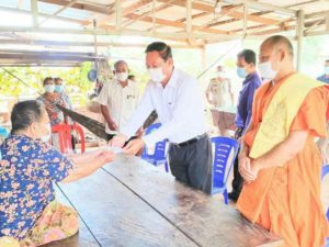 កំពង់ចាម ៖នៅព្រឹកថ្ងៃទី៣១ ខែសីហា ឆ្នាំ២០២១ ឯកឧត្តម ខ្លូត ចិន្តា អភិបាលរងខេត្តកំពង់ចាម និងព្រះយសមេត្តា ចាន់សុជន ព្រះវិន័យធរអនុគណស្រុកតំណាងព្រះអនុគណស្រុក បានអញ្ជើញ និងនិមន្តសួរសុខទុក្ខ និងសំណេះសំណាល ជាមួយអាចារ្យ-គណ:កម្មការវត្ត ចំនួន៤វត្ត ក្នុងឃុំបុសខ្នុរ ក្នុងនោះឯកឧត្តមបាននាំយកនូវអំណោយរបស់ឯកឧត្តម ហ៊ុន ម៉ានិត និងលោកជំទាវ ជូន ដល់អាចារ្យ-គណ:កម្មការទាំង១៦នាក់ ម្នាក់ៗទទួលបានឃីត០១កញ្ចប់ (ទឹកដោះគោ តែ ស្ករស) និងក្រមា ។បន្ទាប់ពីជួបសំណេះសំណាលរួច ឯកឧត្តម ខ្លូត ចិន្តា អភិបាលរងខេត្តកំពង់ចាម និងព្រះយសមេត្តា ចាន់សុជន ព្រះវិន័យធរអនុគណស្រុកតំណាងព្រះអនុគណស្រុក បានអញ្ជើញ និងនិមន្ត សួរសុខទុក្ខ ប្រពន្ធរបស់លោក គឹម ឃួន ជំទប់ទី២ នៃឃុំបុសខ្នុរ ដែលកំពុងមានជំងឺសម្រាក់ព្យាបាលនៅផ្ទះស្ថិតនៅភូមិសាមគ្គី ឃុំបុសខ្នុរ ស្រុកចំការលើ ក្នុងឯកឧត្តម បានយកថវិការបស់ឯកឧត្តម ហ៊ុន ម៉ានិត និងលោកជំទាវ មួយចំនួនជូនដល់គាត់សម្រាប់ជួយសម្រួលដល់ការព្យាបាលជំងឺផងដែរ។