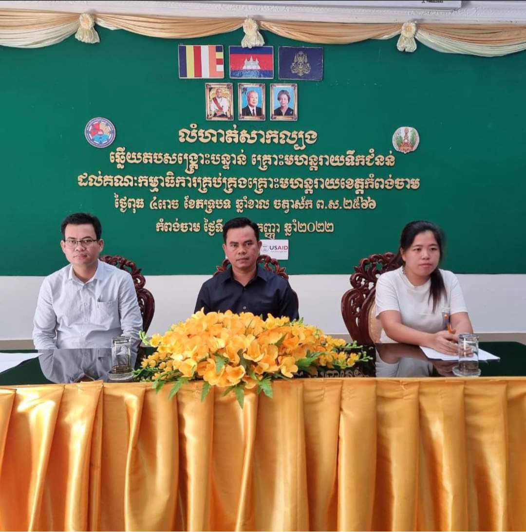 ឯកឧត្តម សា ស៊ីថា អភិបាលរង នៃគណៈអភិបាលខេត្ដ បានអញ្ជើញចូលរួមបើកវគ្គបណ្តុះបណ្តាលលំហាត់សមយុទ្ធសាកល្បងឆ្លើយតបសង្គ្រោះបន្ទាន់គ្រោះមហន្តរាយទឹកជំនន់ ដល់គណៈកម្មា ធិការគ្រប់គ្រងគ្រោះមហន្តរាយខេត្តកំពង់ ចាម Posted on ថ្ងៃ ពុធ, 14 កញ្ញា, 2022Wednesday, 14 September, 2022